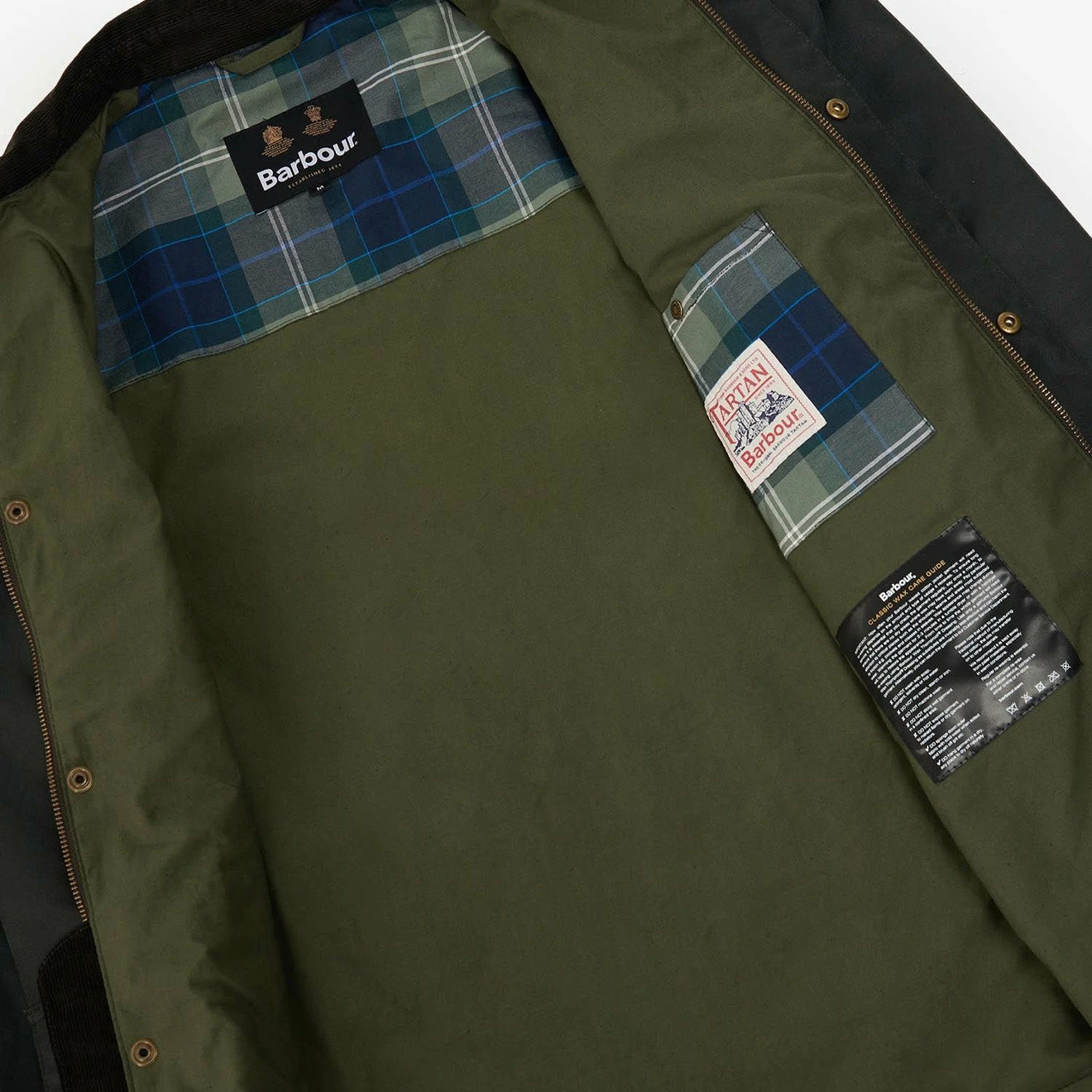 The Barbour Ambleton Waxed Jacket is crafted from 100% waxed cotton to the outer and a 100% cotton tartan-print lining, the premium garment features a classic corduroy collar. Boasting a pared-back aesthetic.