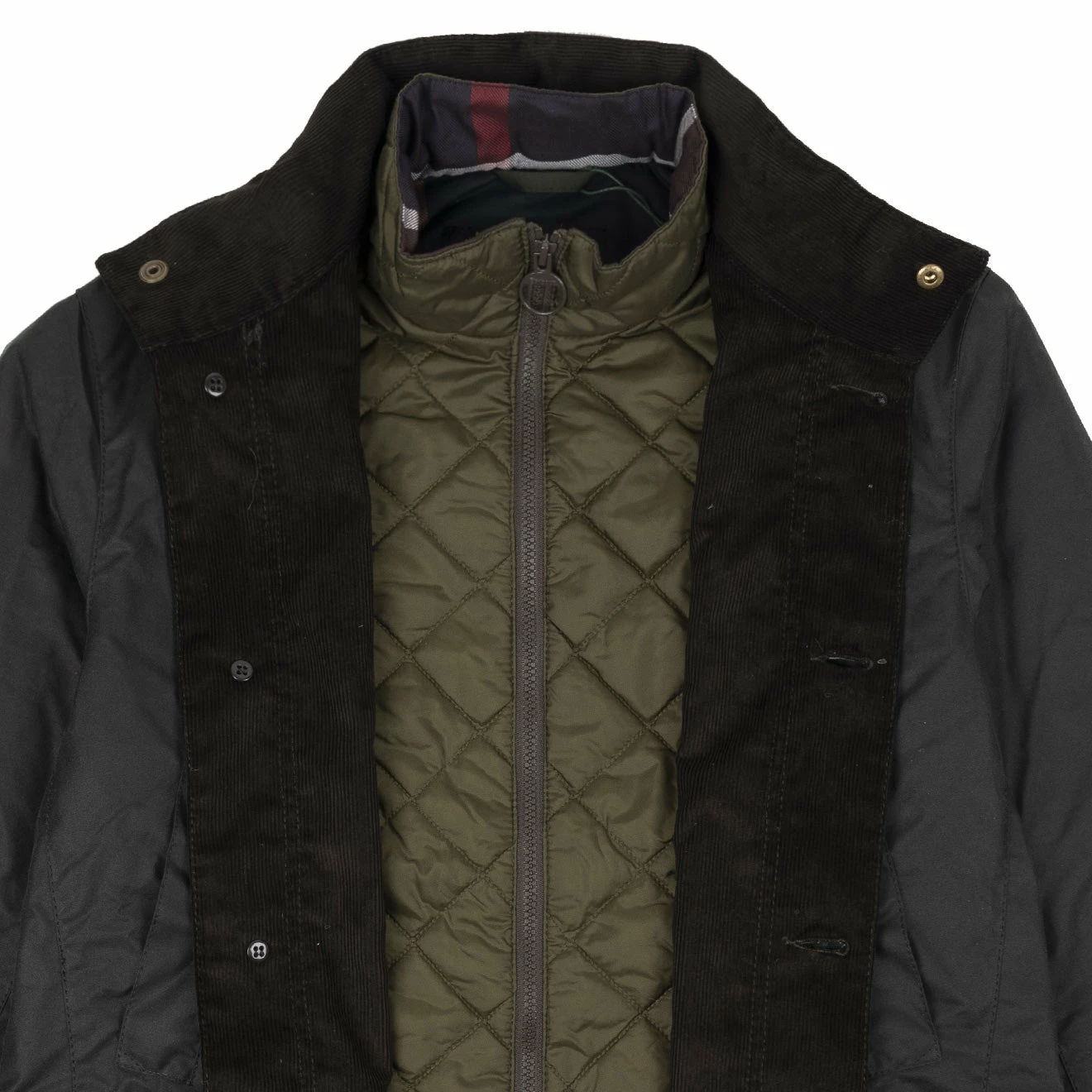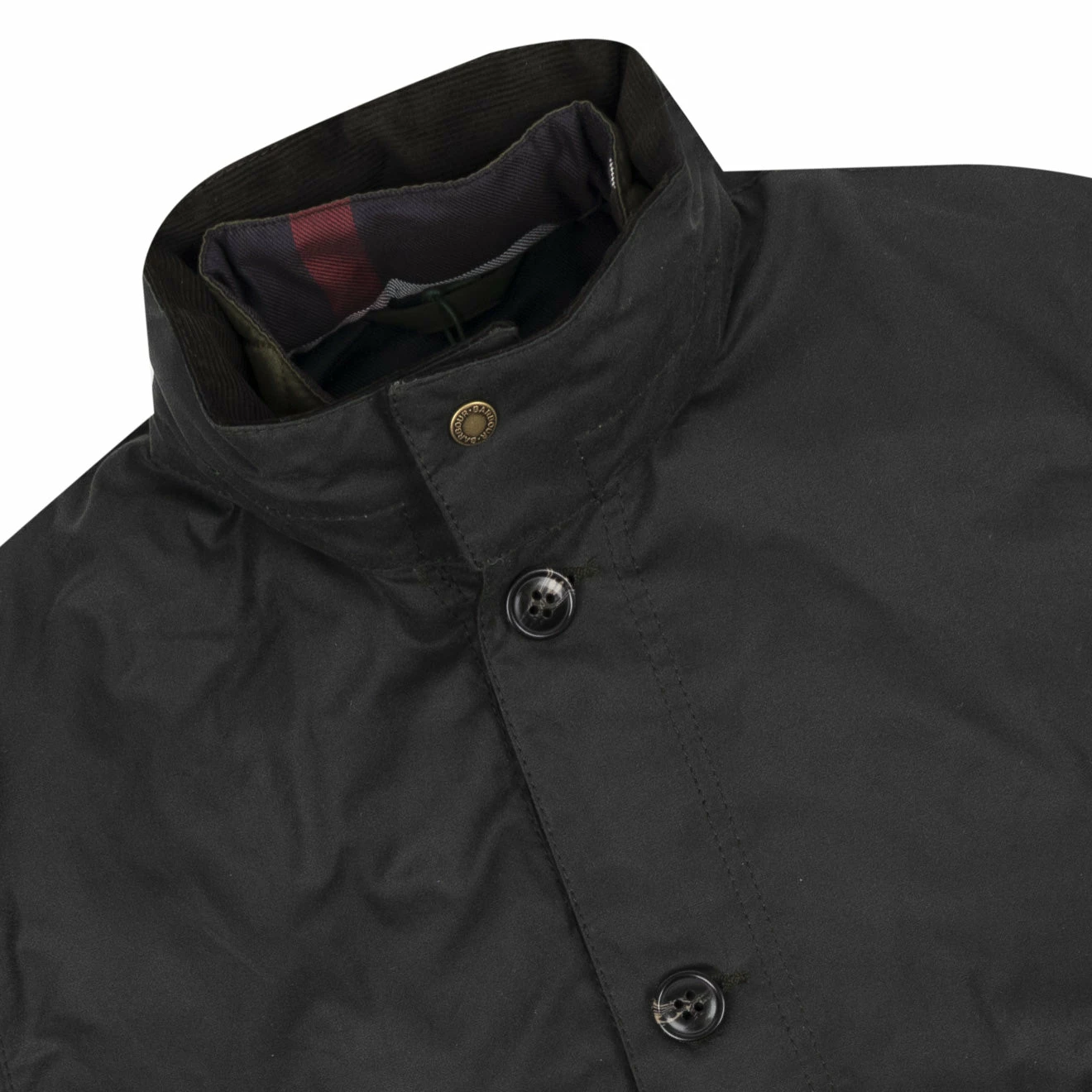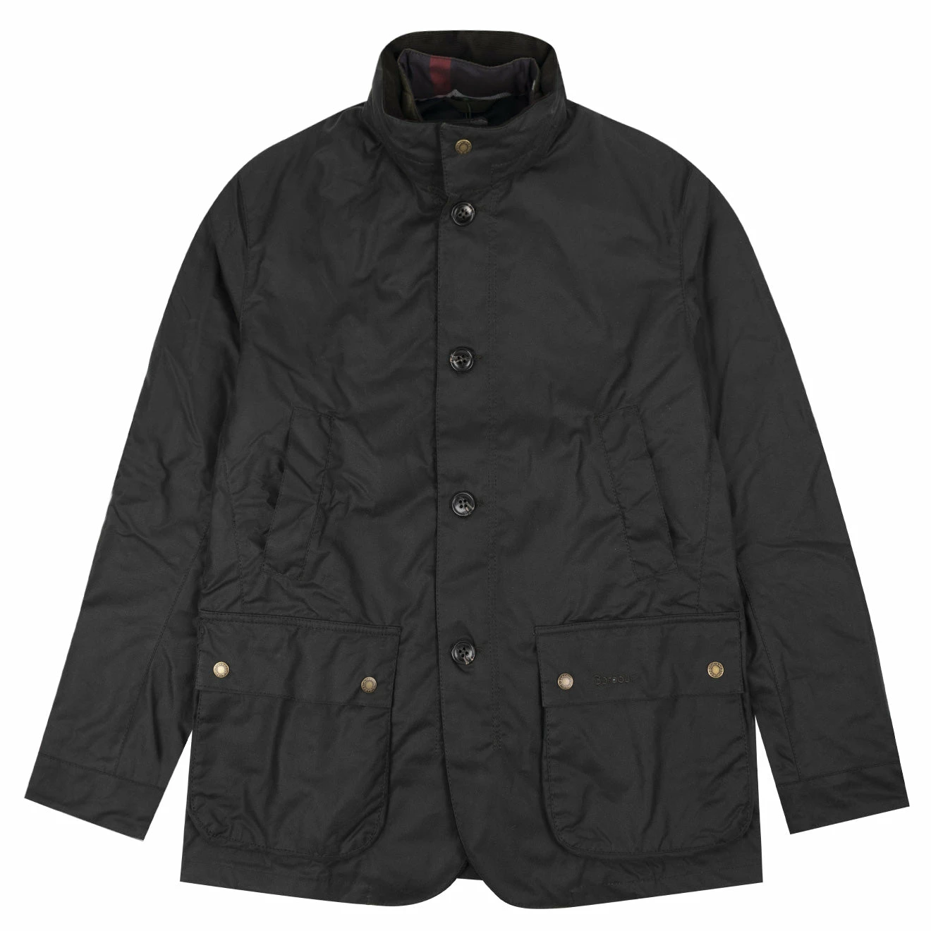 The Barbour Century wax jacket features a tartan lining and cord collar with a stow away hood for unexpected showers. Adjustable waist and cuffs create a flattering silhouette with two hand warmer pockets for added luxury. This jacket also features two bellow pockets and is finished with Barbour tonal embroidery to the left pocket flap.