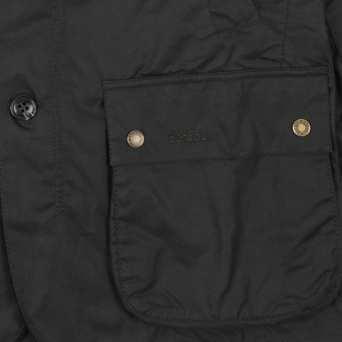 - Barbour tonal embroidery to front left lower pocket flap