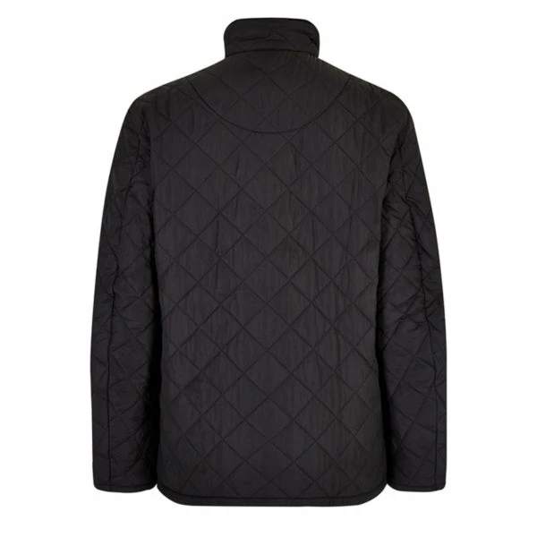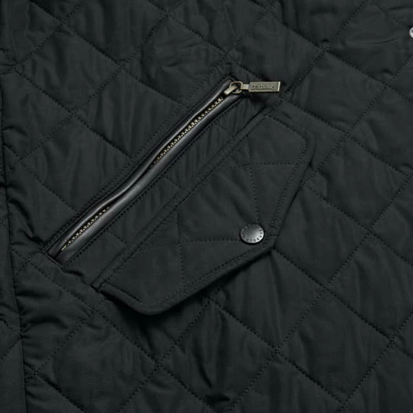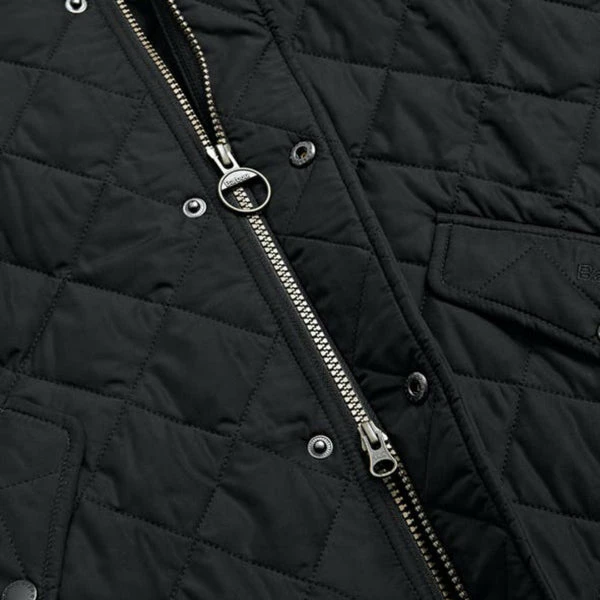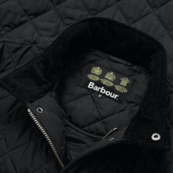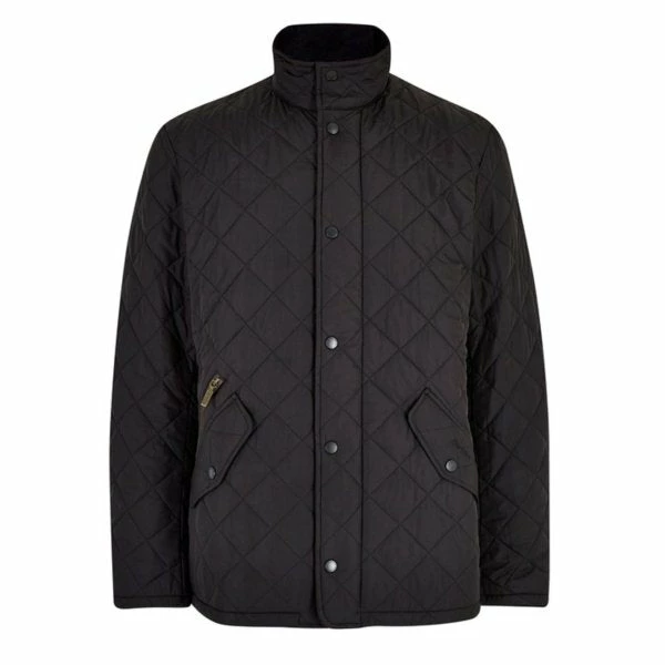 The Barbour Chelsea Sports Quilted Jacket is crafted from a matte-finished diamond quilted outer using incredibly warm 100-gram wadding and a quilted nylon lining for ultimate warmth and comfort. The jacket is designed with a quilted funnel collar which gives the jacket a fashionable look. Â The collar is lined with corduroy for a super-soft feel. The jacket features back waist tabs for an adjustable fit. The robust stud fastenings help keep out the wind and rain and the two front pockets allow essentials to be carried. It is finished with the classic Barbour embroidery to the pocket flap.