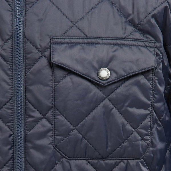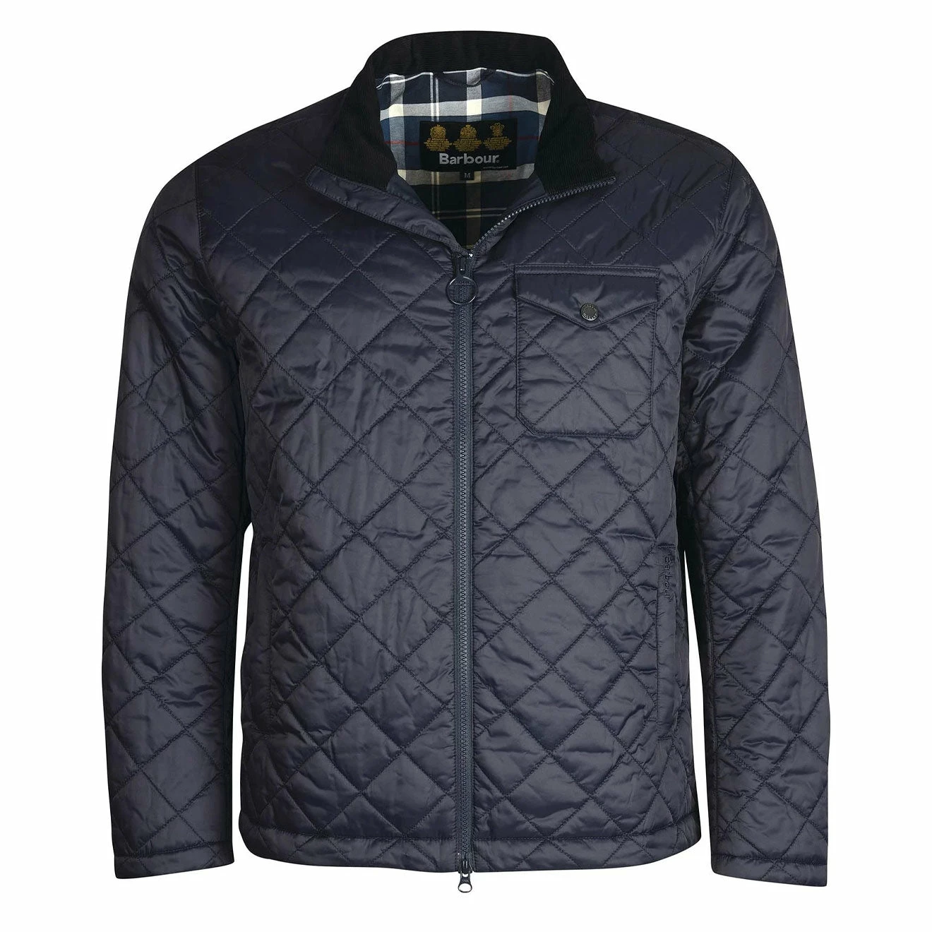 The Barbour City Quilted Jacket features an all-over box quilt design with a stand collar and a front zip fastening. Finished with an inner tartan yoke, an adjustable hem for a tailored fit and two lower welt pockets.