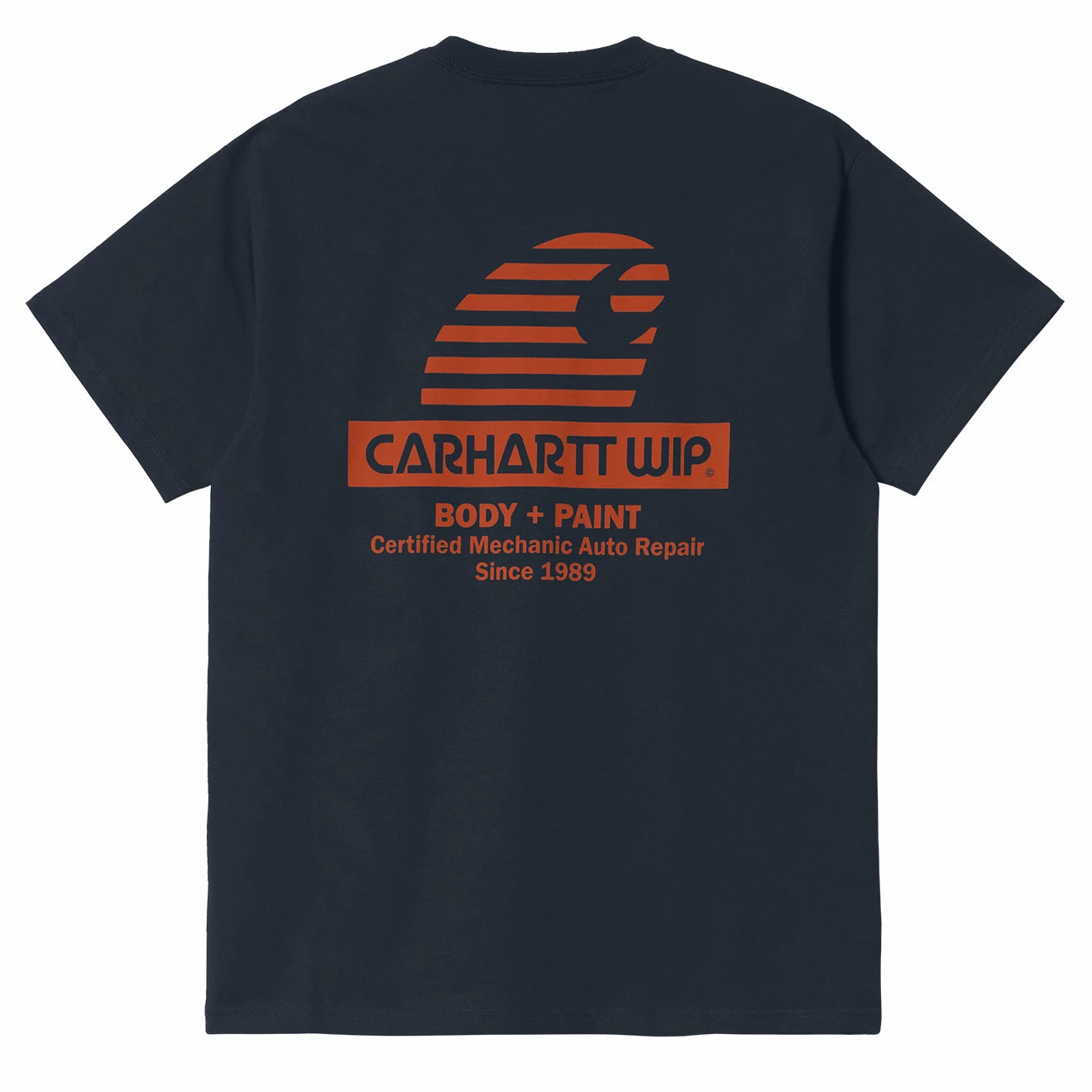 The Carhartt Mechanic T-Shirt is made from a midweight, organic cotton jersey cut in to a loose fit. It features a ‘Carhartt Body + Paint Auto Repair’ graphic on the left chest and back.