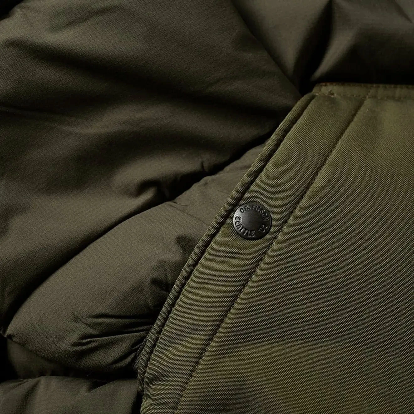 Here we have the Featherweight Down Jacket in a wintry Otter Green. Pacific north west-based