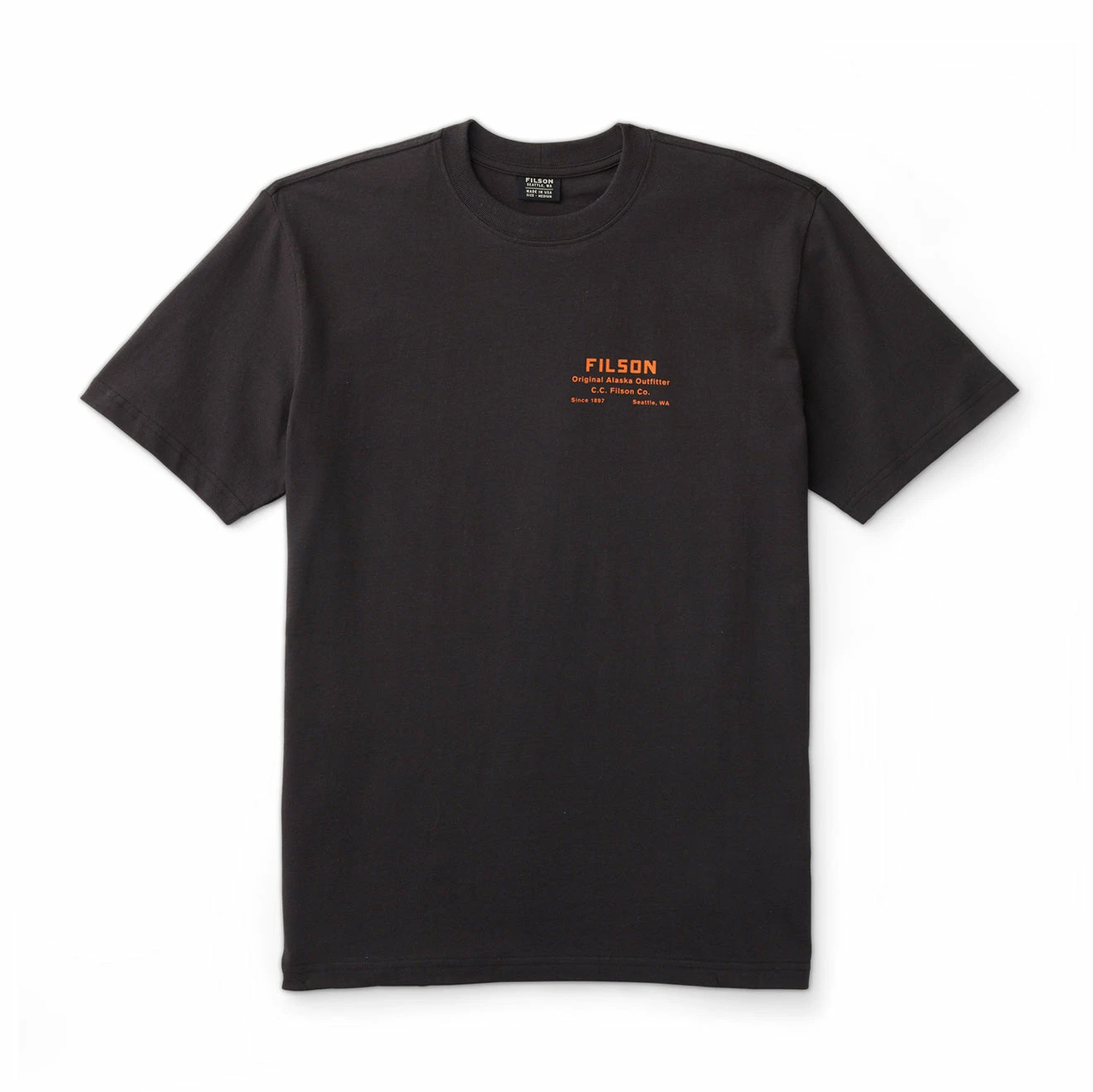 The Filson Outfitter Graphic T-Shirt is formed from 100% Jersey Cotton and features a ribbed crew neck, filson graphic print and is made in the USA.