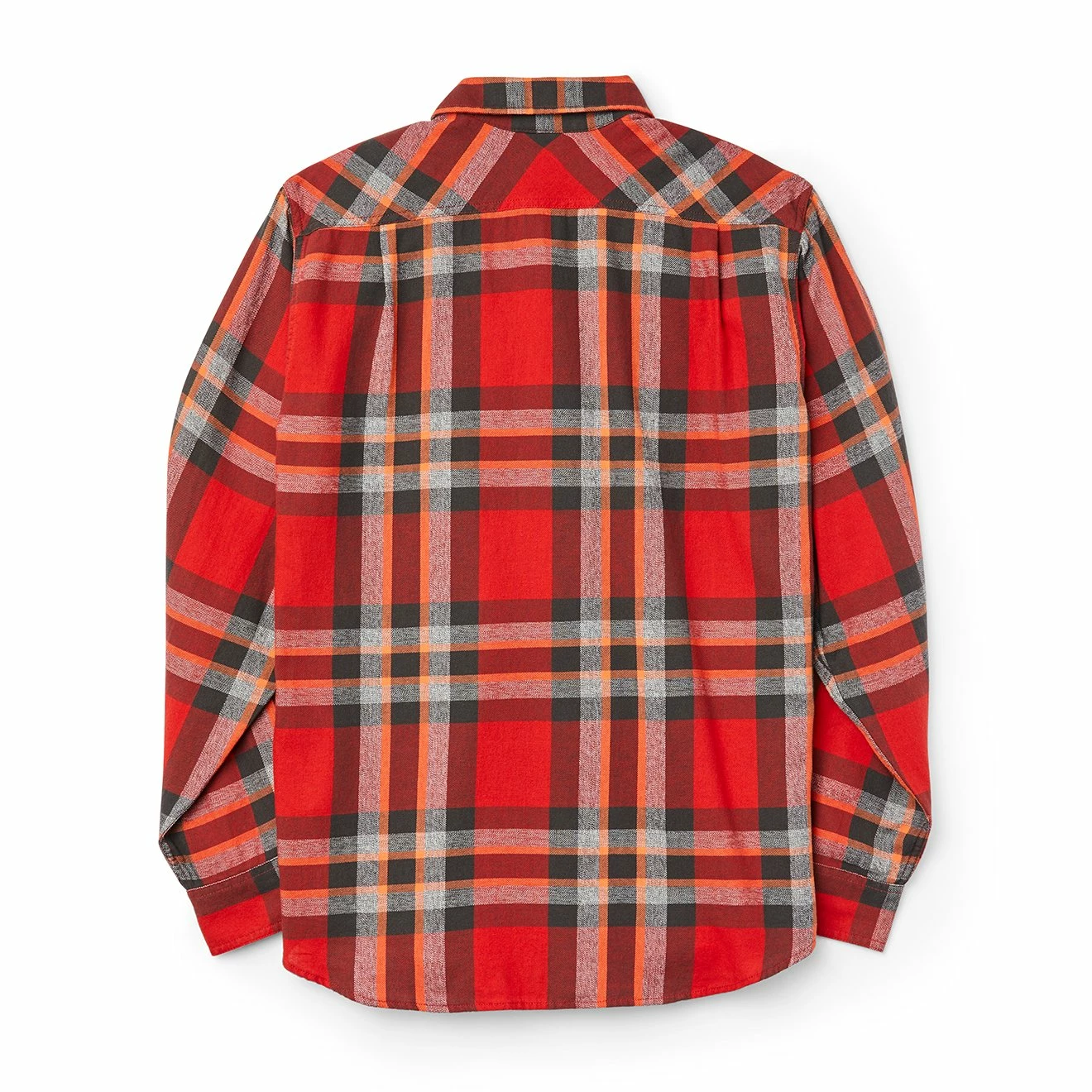 The Filson Scout Shirt in Red, Black and Flame Plaid is an ideal addition to any wardrobe. Providing year round comfort with the 100% cotton twill lightweight material used to craft the shirt. The cotton fabric has been yarn-dyed so that it resists any fading. It features adjustable cuffs and pleated shoulders to provide optimum mobility.
