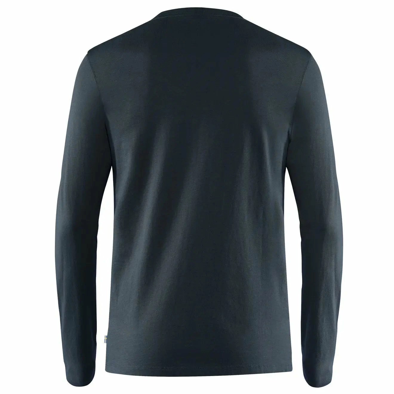 The Fjallraven Forever Nature Badge Long Sleeve T-Shirt Dark Navy is created from 100% organic cotton with long sleeves and a round neckline and features a Fjällräven Forever Nature emblem printed to the left chest.