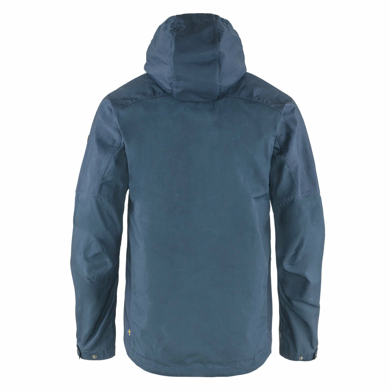 The Fjällräven Sten Jacket Dark Navy is made from the original G-1000 fabric and features a concealed full zip close with soft leather branded pull tab, one chest and two waist zip close pockets.