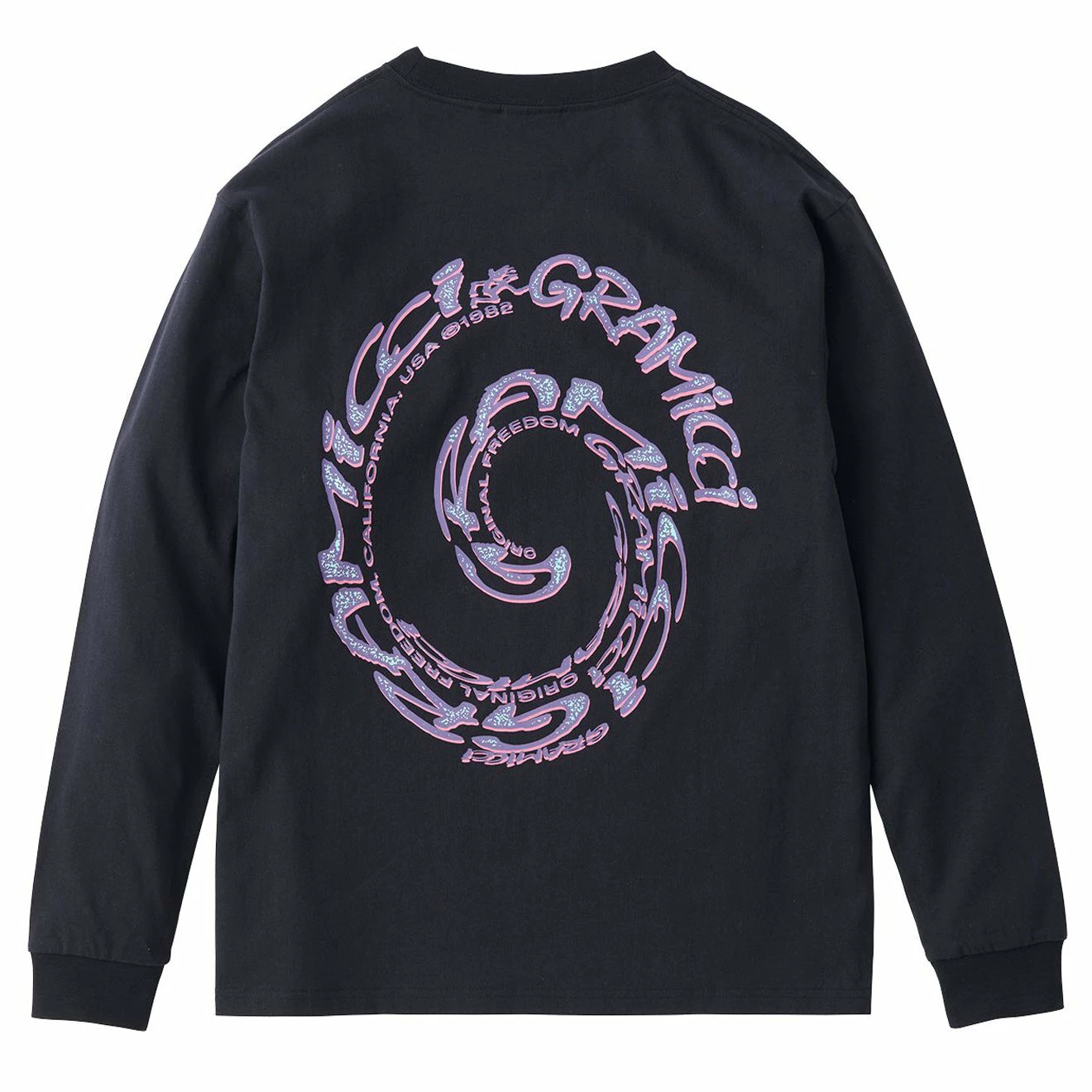 The Gramicci Swirl L/S Tee is comfy and versatile, made from breathable organic cotton. Finished with a swirl Gramicci logo print on the back and small banding on the left chest.