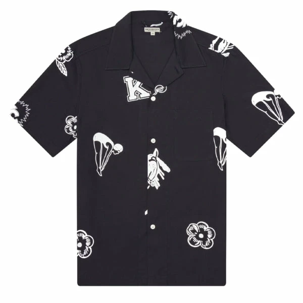 The Knickerbocker Camp Shirt features a limited edition print by Joshua Minnich. Ideal for summer, this short-sleeve shirt includes a camp collar, mother of pearl buttons and is made from 100% cotton.