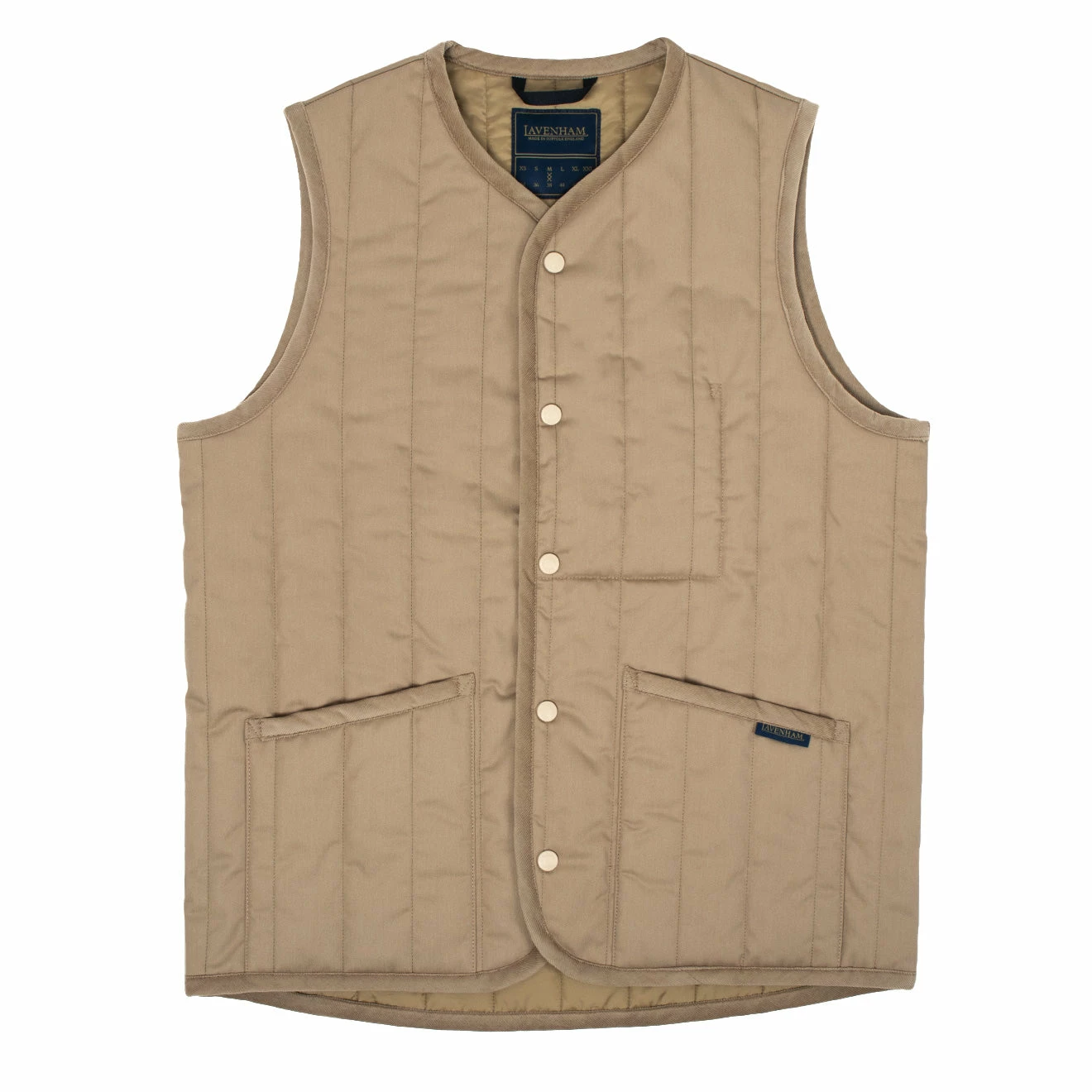 The Thornham is crafted from a utility cotton mix on the outer with a ‘Lavenster’ lining in a unique 2” vertical quilt. The absence of a collar enables it to sit comfortable over a shirt for cooler summer evenings, but also over a heavier knit as the weather turns colder. It even works as a liner under your favourite winter coat.