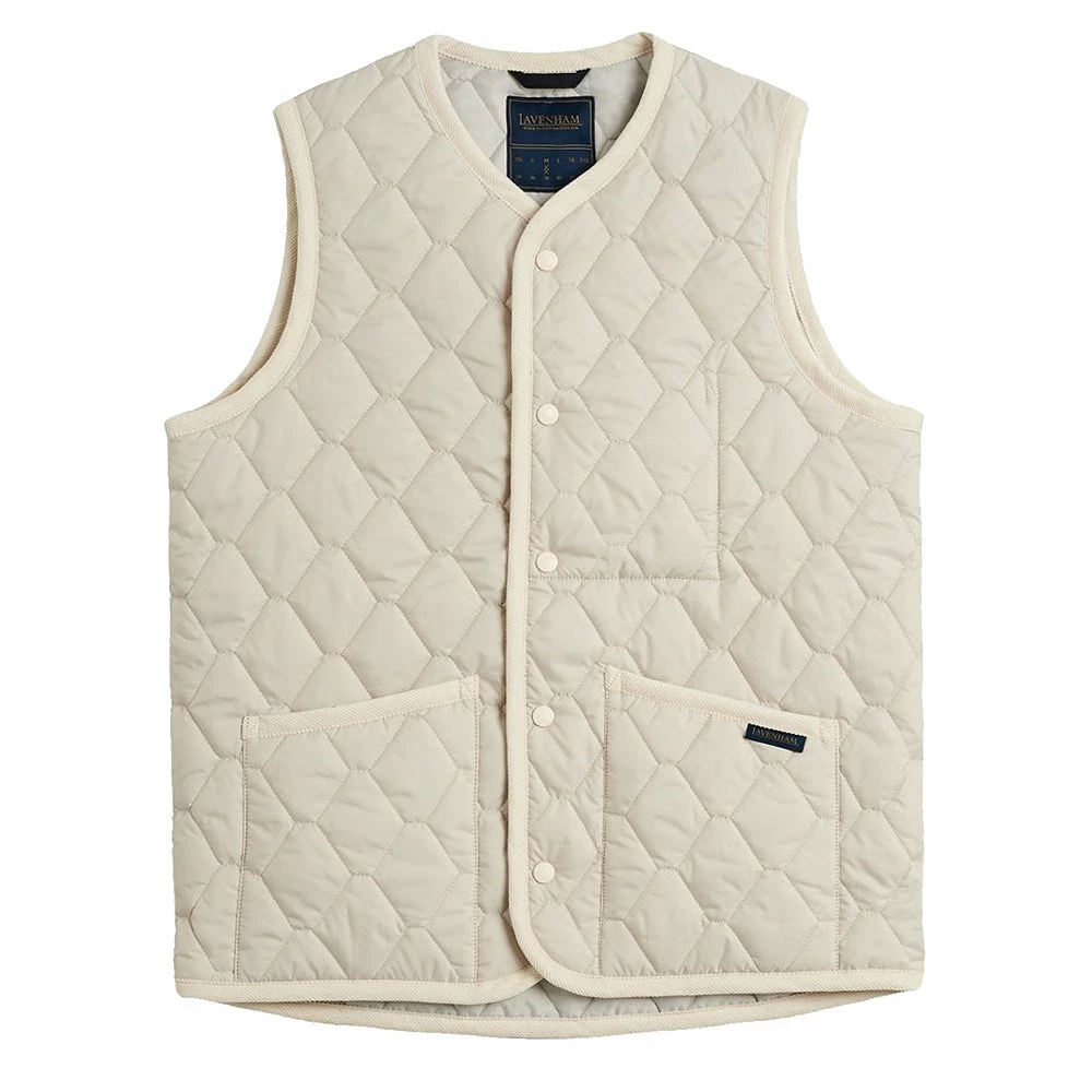 The Thornham is crafted from a recycled polyester in a unique honeycomb quilted pattern. The absence of a collar enables it to sit comfortable over a shirt for cooler summer evenings, but also over a heavier knit as the weather turns colder. Finished with two patch pockets, one internal chest pocket and organic cotton corduroy binding for a neat edge and enhanced durability.