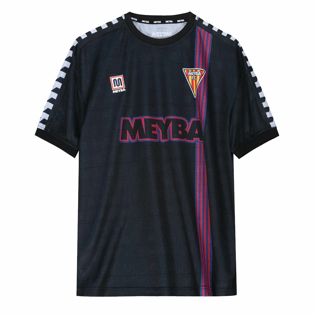 The Meyba Cata Tee takes the famous Barca colours and 70’s style taping on the sleeves to give you archetypal football shirt goodness. Featuring Meyba printed graphics to the chest and a subtle pattern woven through the fabric.