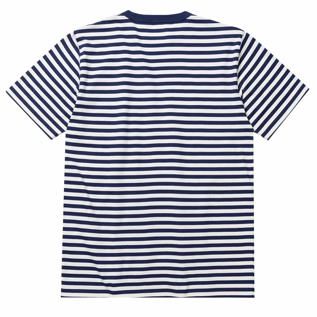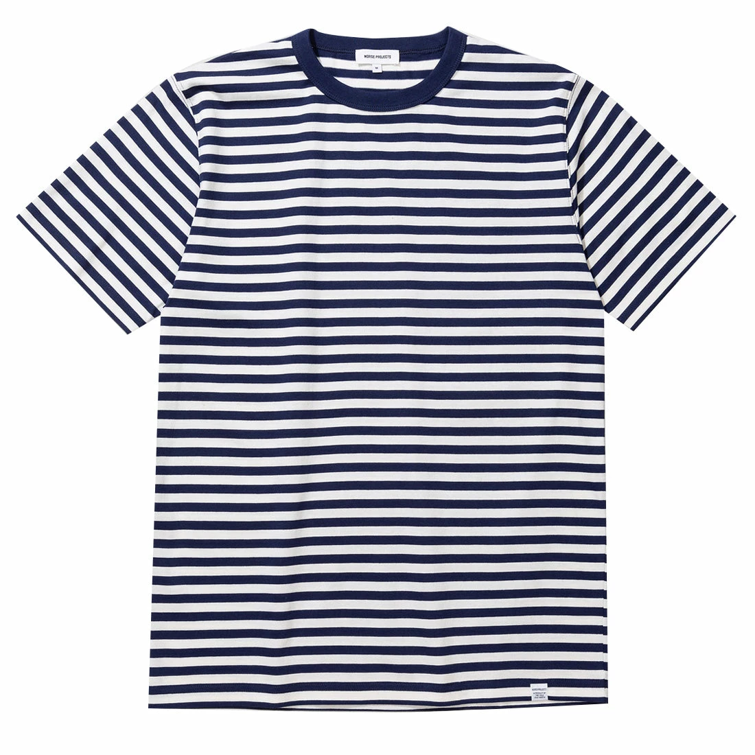 The Niels Classic Stripe SS is cut in a midweight organic cotton jersey with a simple stripe pattern. The t-shirt is finished with set-in sleeves, contrast ribbed binding around the neck and twin needle stitched cuffs and hem.