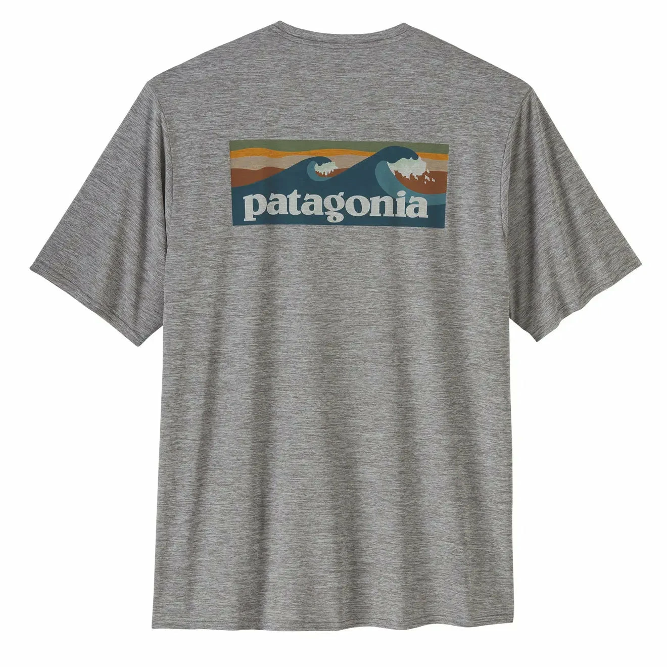 The Patagonia Capilene Cool Daily Graphic Shirt features their Boardshort Logo. Is one of Patagonia’s most versatile, technical tees – built for use on the trail of on the water. It’s quick-drying, has stretch for mobility and comfort, plus HeiQ® Pure odor control.