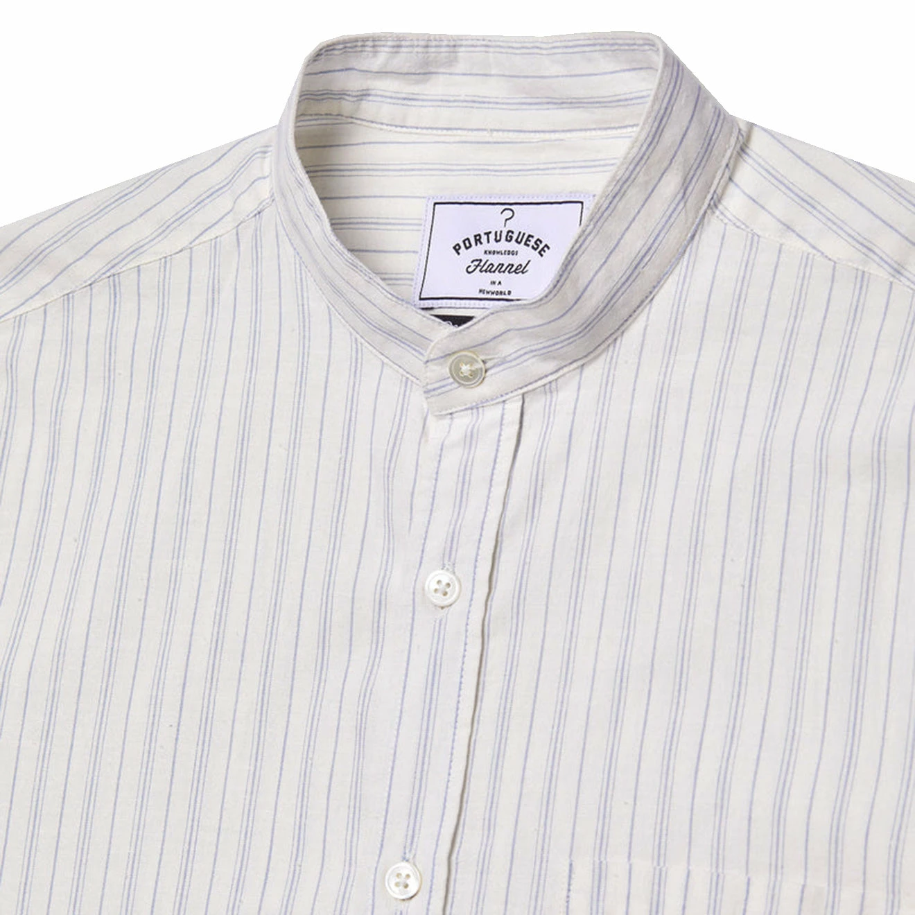 The Portuguese Flannel Mao Suave Shirt is 100% cotton with a classic banded collar and button down placket – this is style you can go back to year after year.