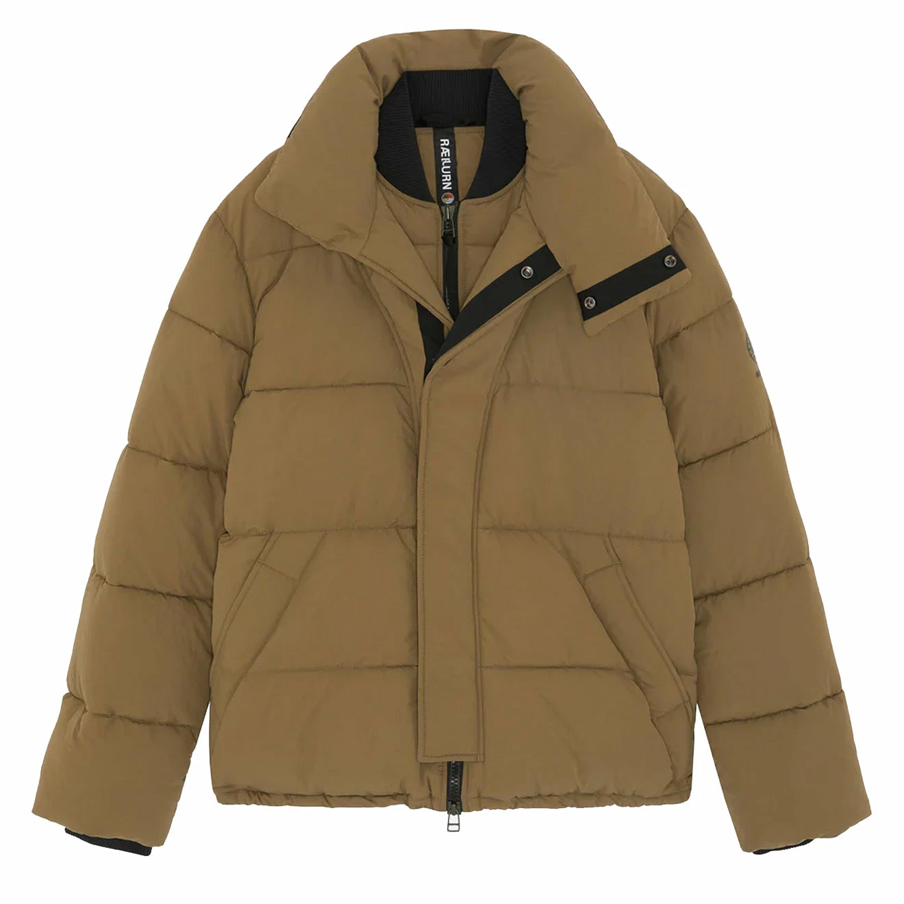 The RÆBURN Filled Parka is a water-repellent, military-inspired outerwear piece. The shell fabric is crafted from 100% recycled nylon which has undergone a wash treatment to create a crinkle texture and is insulated using RÆCYCLED rolled fill. Taking inspiration from the military artefact, the Upper Deck Crewman’s Suit – this is a must have.