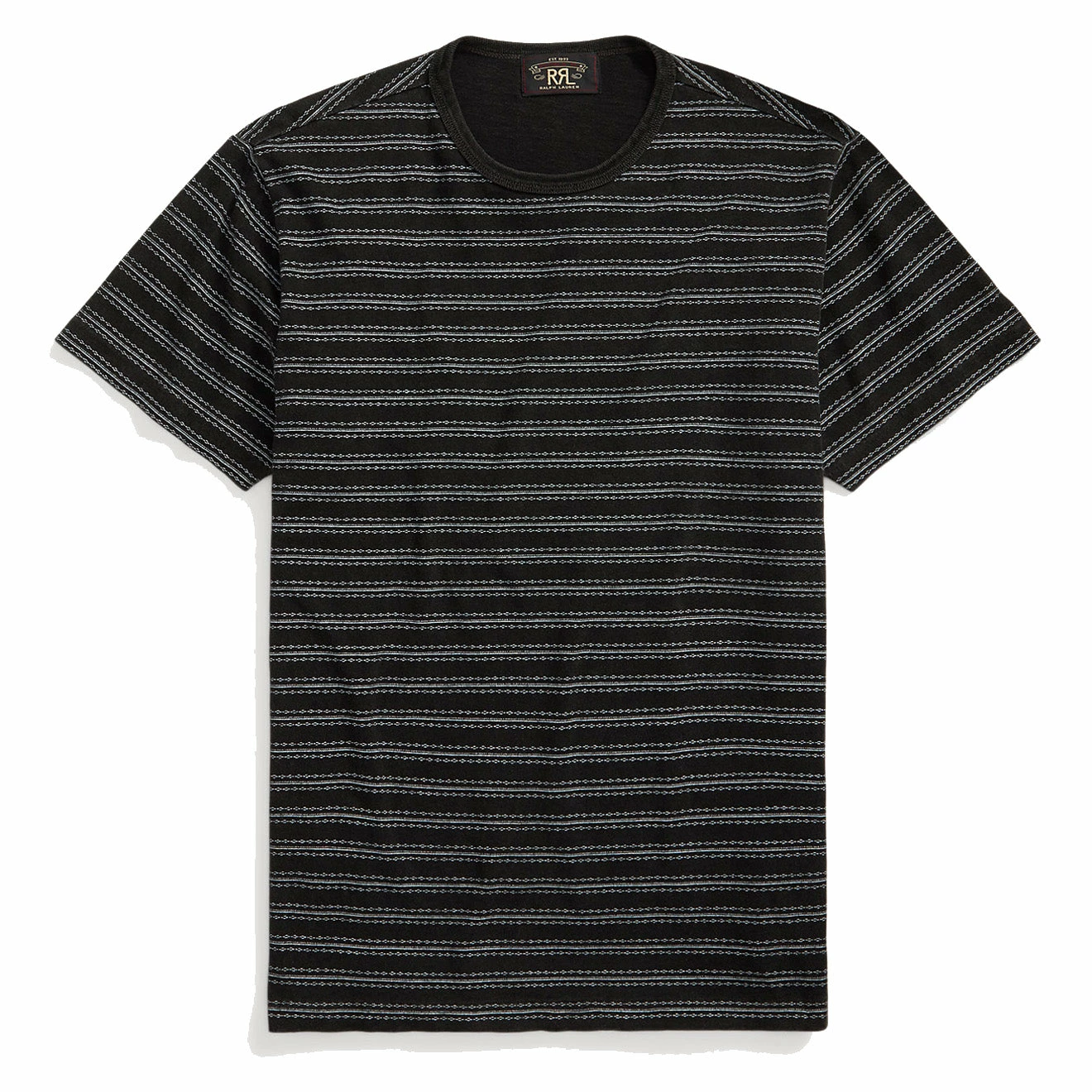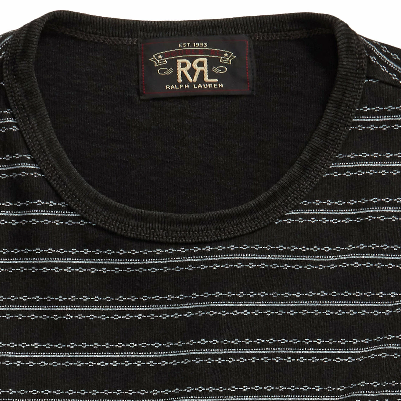 The RRL by Ralph Lauren Indigo Striped Jersey T-Shirt is made with cotton jersey. Yarn-dyed with true indigo. Washed for added softness.