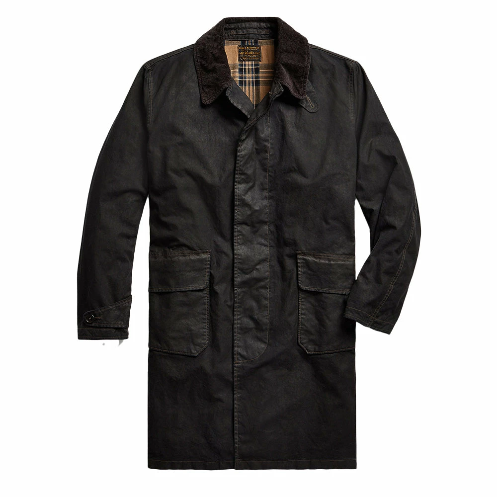 The RRL by Ralph Lauren Waxed Cotton Coat is made from waxed cotton and detailed with a corduroy collar and cuffs.
