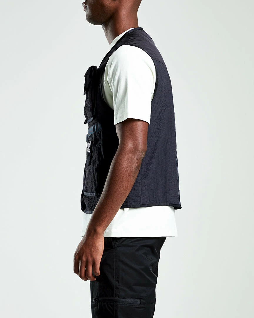 The Delta Vest is military inspired, its has been garment dyed in a relaxed fit and has an oversized detachable pocket to the front, with signature webbing to the front, shoulder and back. It has the signature taped web detail with detachable logo patch to the front.