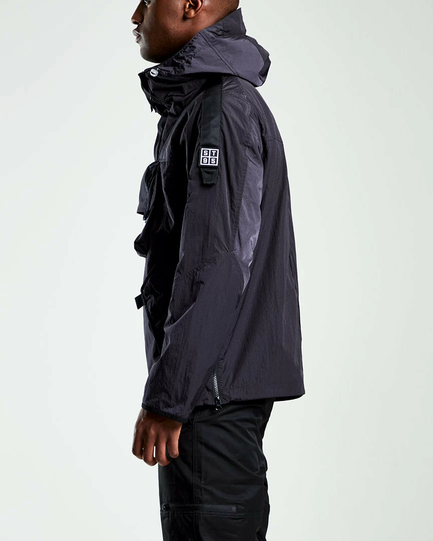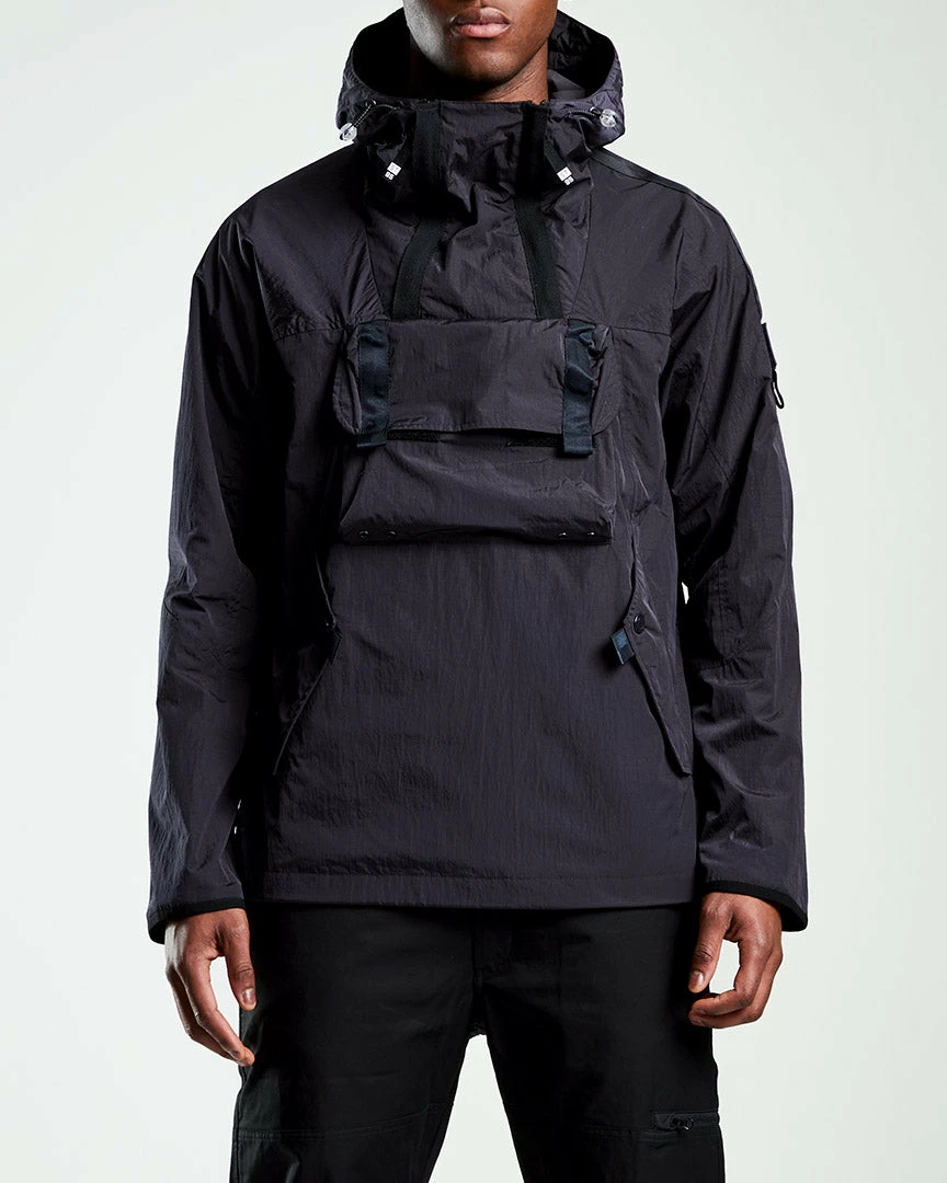 The Drogue Smock 2.0 is an evolution from the original design, is unlined, specifically developed for the Spring Summer Season. It has a relaxed fit and has been garment dyed. Featuring signature shoulder, sleeve and back webbing detail which incorporates a detachable branded patch to sleeve LHSAW. Featuring a double zip with gusset at collar and zip at side for easy access as well as a boxy chest pocket.
