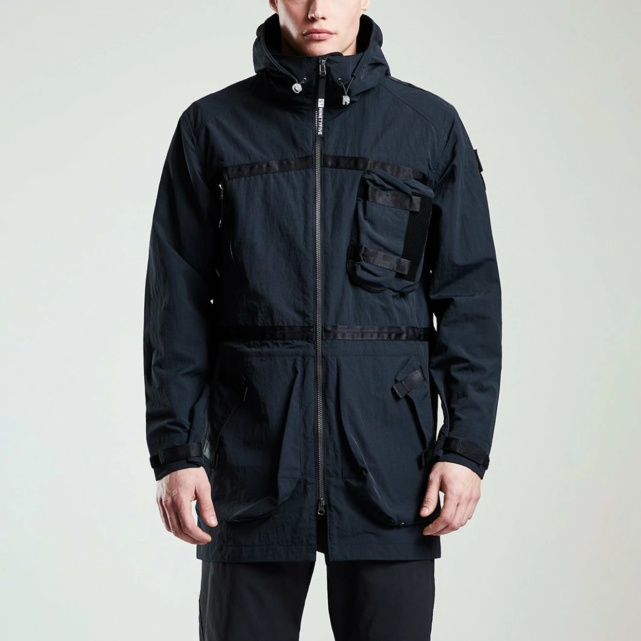 The Geo Parka has been dyed in a relaxed fit and features oversized pockets at front. Featuring signature shoulder and sleeve webbing detail which incorporates a detachable branded patch to sleeve LHSAW. Other details have been inspired by US Navy Seal Medical Vests.