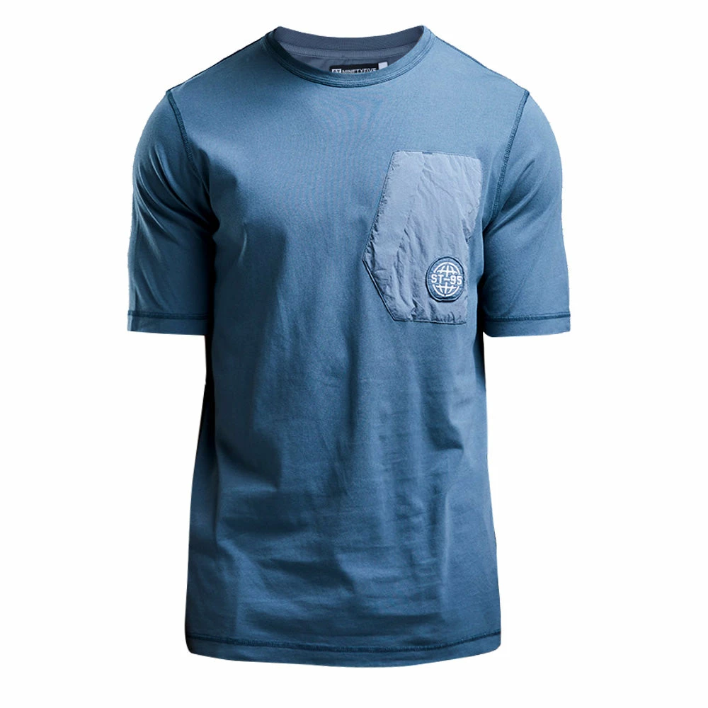 The Globe Pocket Tee has been garment dyed in a relaxed fit, manufactured from 100% cotton. It features an overdyed, a woven globe patch logo on the left chest, with integral signature seam stitching detail on the shoulders and sleeves, with a tonal pocket in recycled nylon to the front.