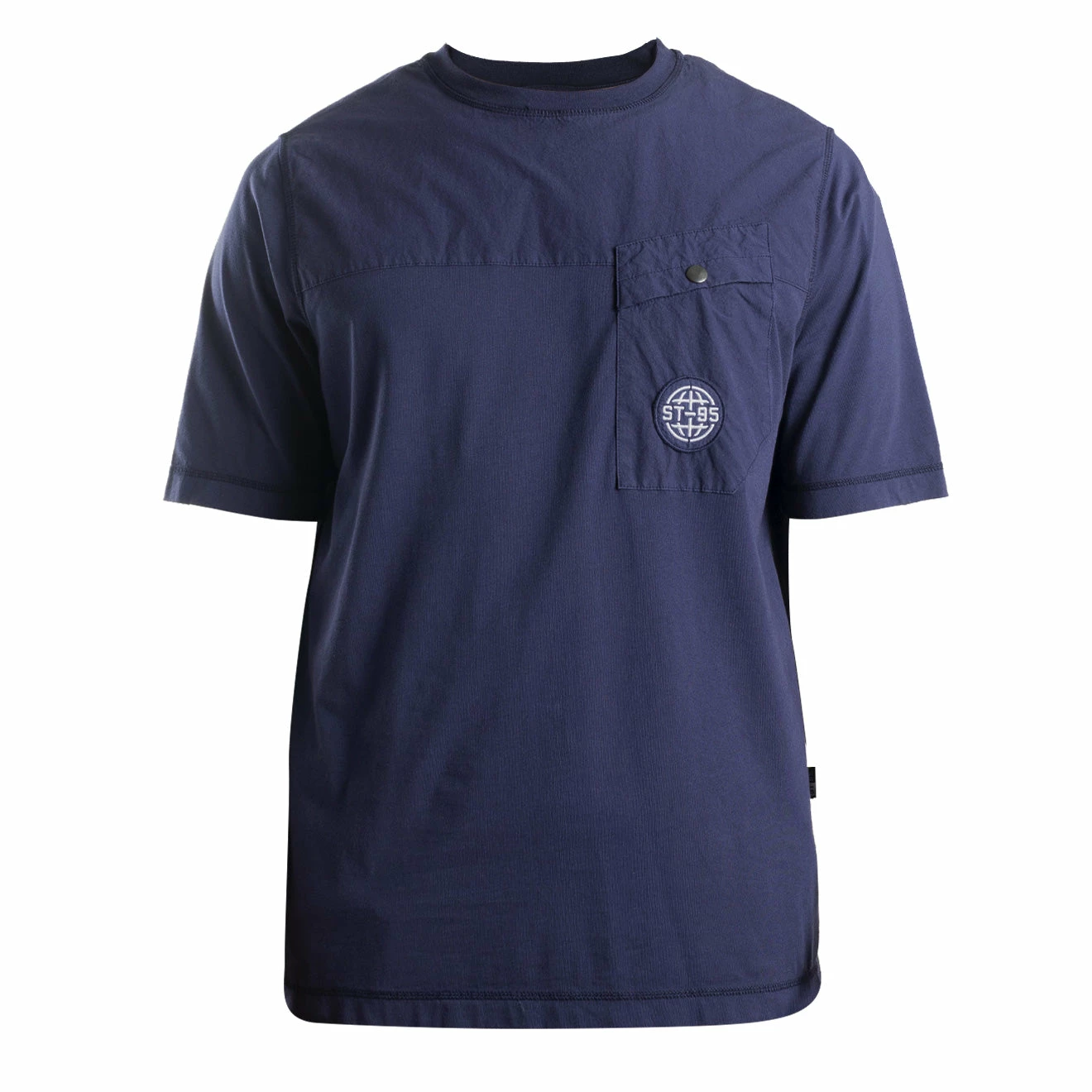 ST95 continues to investigate technical sportwear and distinctive functional pieces. The ST95 Pocket Tee is garment dyed in GOTS certified dye house. This piece features a woven fabric overlay front yoke with snap fastened chest pocket with an overdyed globe badge. An ideal piece for layering, the ST95 pocket tee is a relaxed fit and features a side seam branded tab. Crafted from 100% organic cotton compact weave with a weight of 171gsm, this piece will serve its purpose year after year.Â